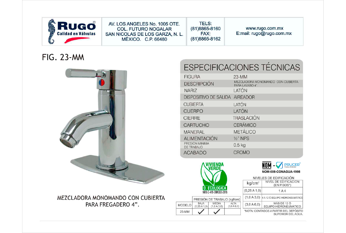 Mezcladora monomando para Lavabo, Acabado: Cromo
