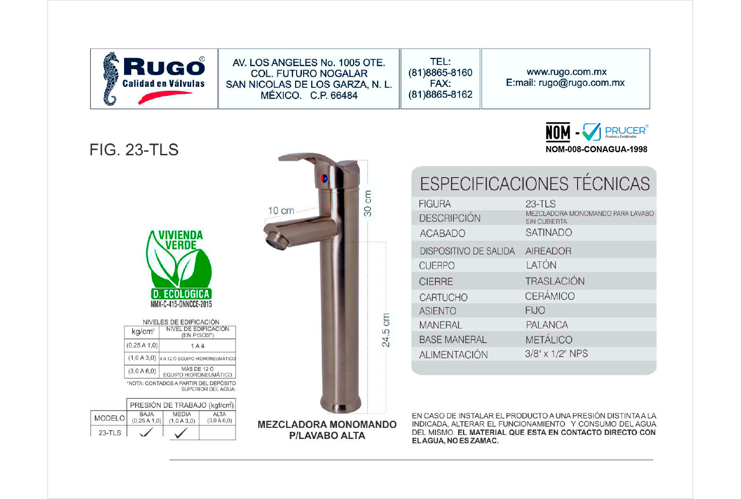 Mezcladora monomando alta para Lavabo, Acabado: Satinado