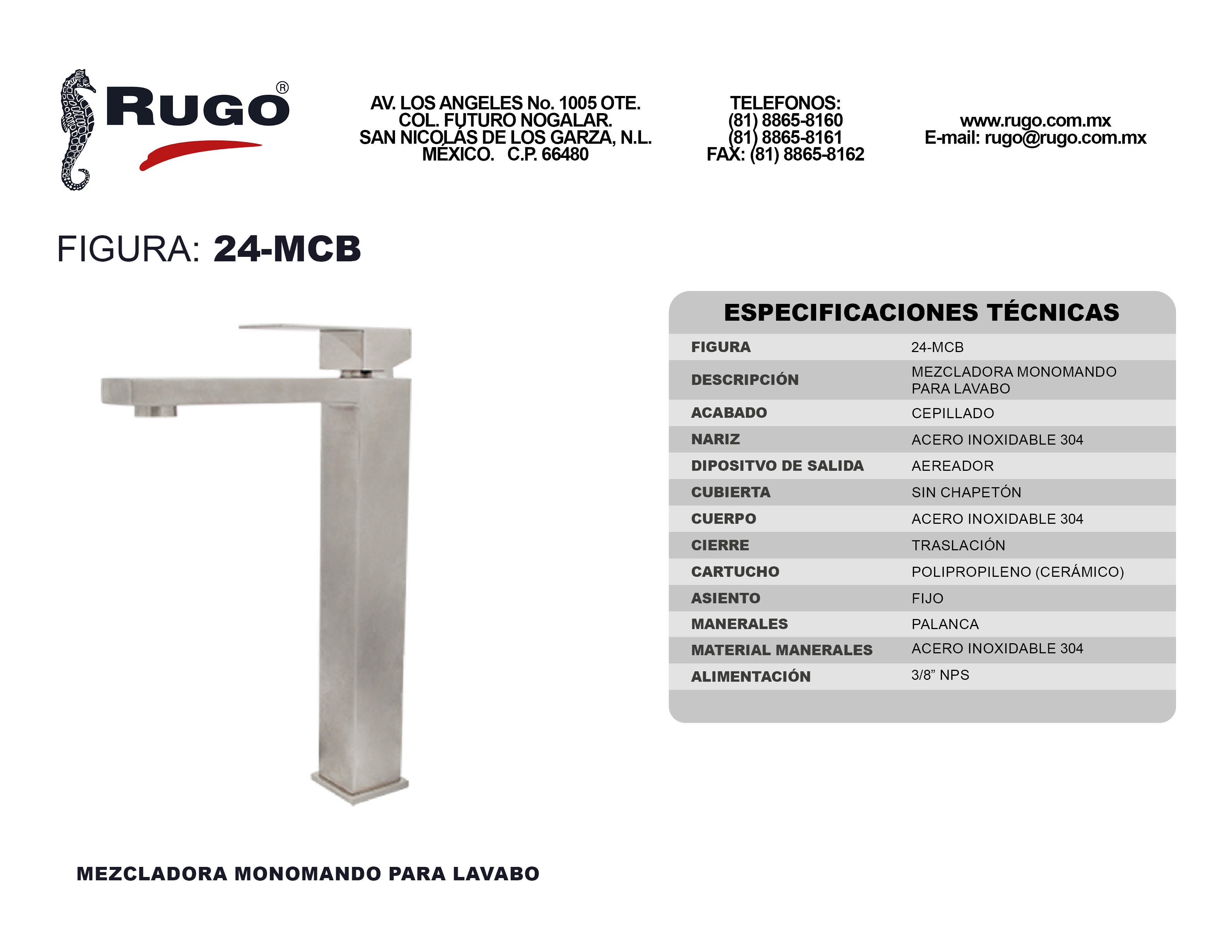 Mezcladora monomando para Lavabo con Chapetón, Acabado: Satinado