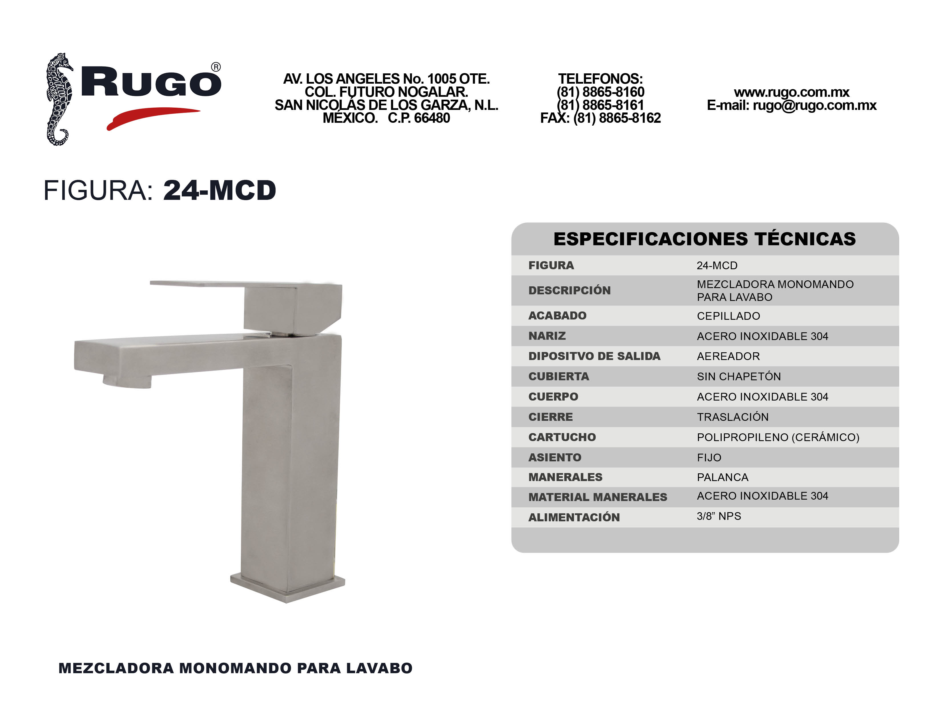 Mezcladora monomando para Lavabo con Chapetón, Acabado: Satinado