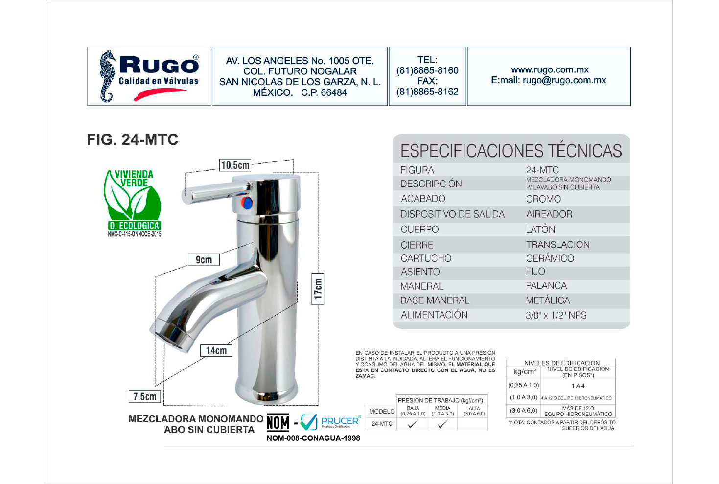 Mezcladora monomando para Lavabo con Chapetón, Acabado: Cromo