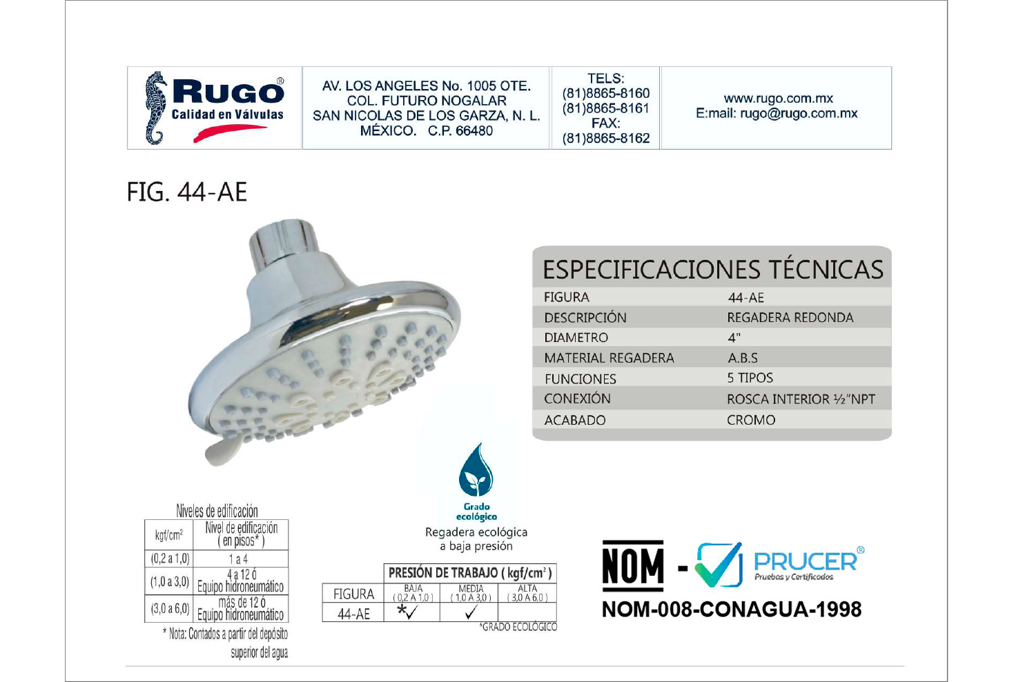 44-AE44-AEInformación del productoBaño RegaderaDescripción Regadera redonda de 4" Ø con 5 funciones sin brazo. Especificaciones técnicasESPECIFICACIONES TÉCNICASVer ficha técnica