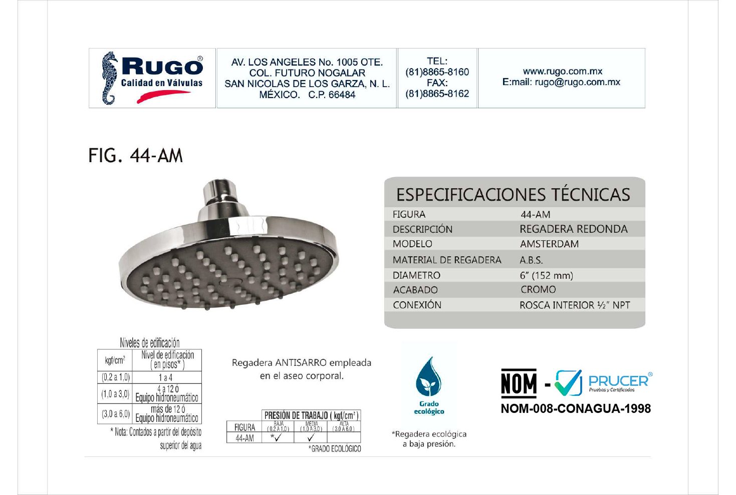 44-AM44-AMInformación del productoBaño RegaderaDescripción Regadera redonda de 6" Ø sin brazo. Especificaciones técnicasESPECIFICACIONES TÉCNICASVer ficha técnica