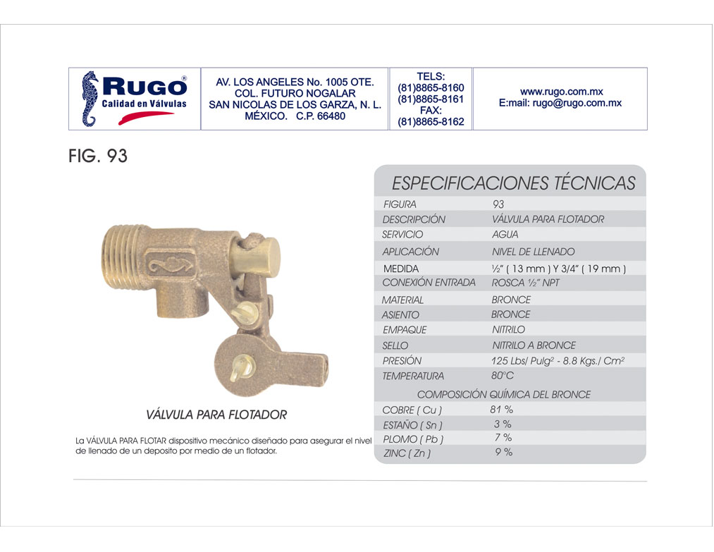 9393Información del productoUrbanización TinacoDescripción Válvula para Flotador. Cuerpo de Bronce | 1/2" | 3/4" Especificaciones técnicasESPECIFICACIONES TÉCNICASVer ficha técnica