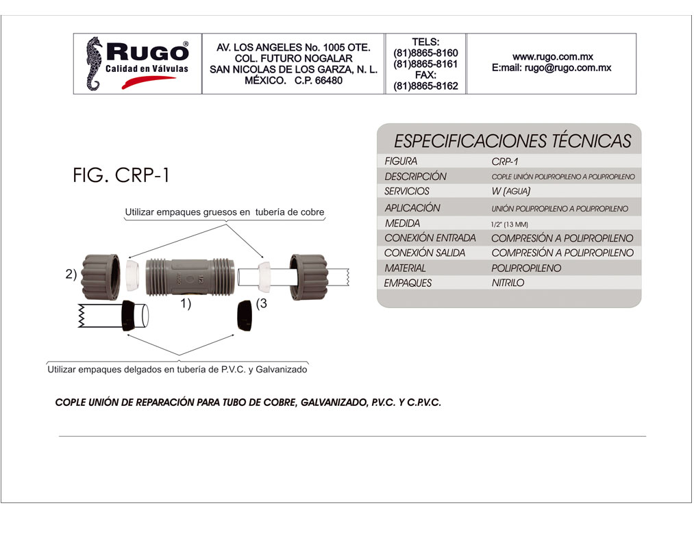 Cople unión para tubo de cobre, Medidas: 13,19,22 y 25mm