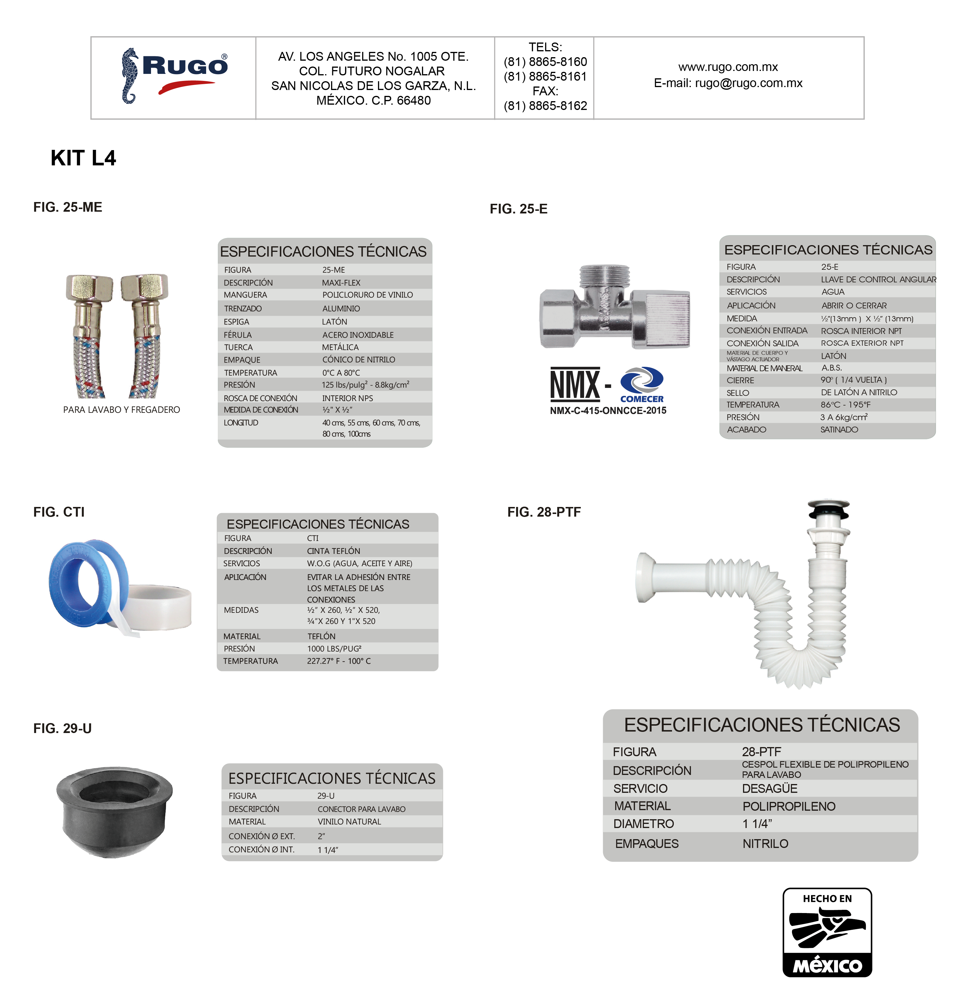 KIT-L4KIT-L4Información del productoBaño KitsDescripción Kit de Instalación para Mezcladora de Lavabo Especificaciones técnicasESPECIFICACIONES TÉCNICASVer ficha técnica